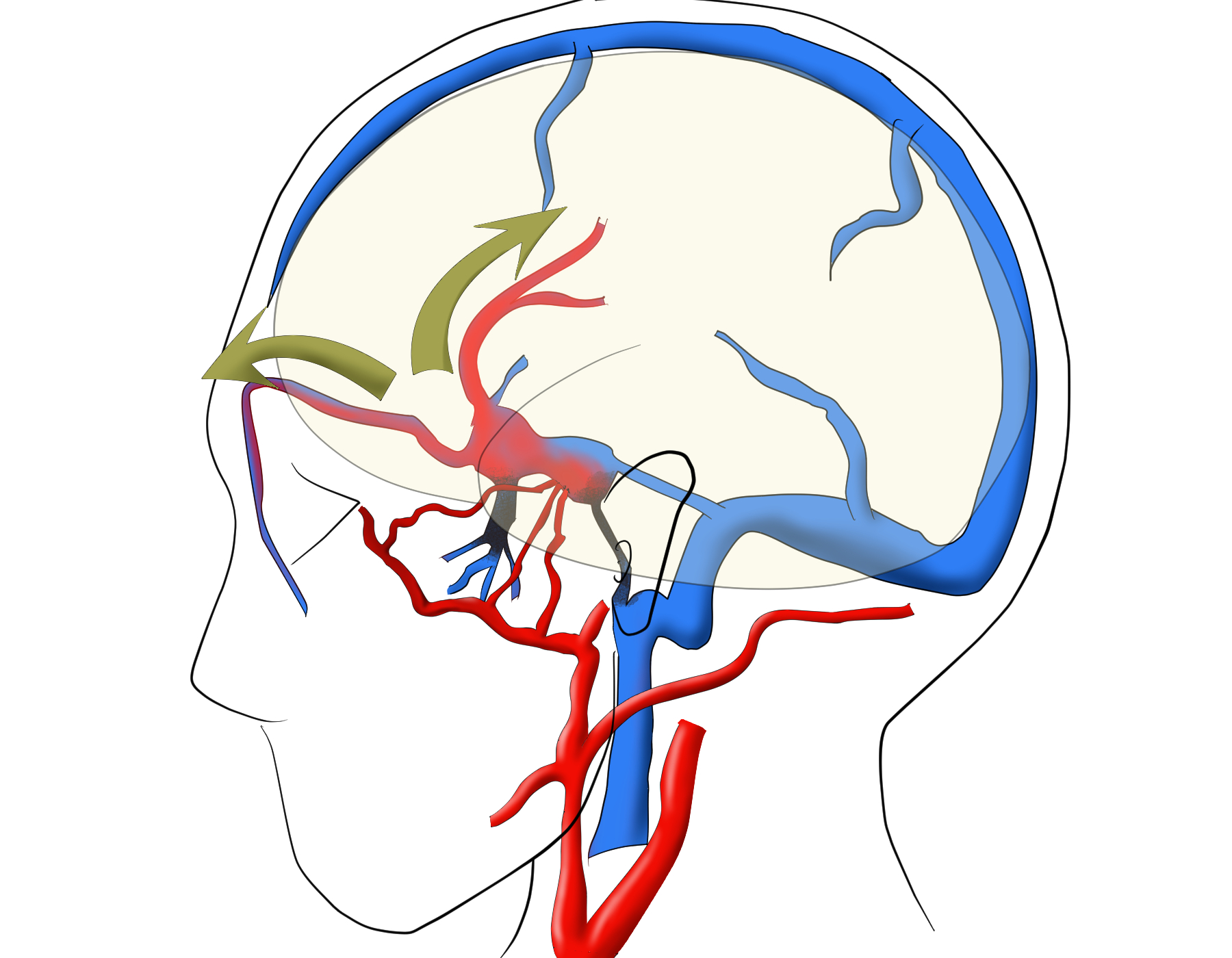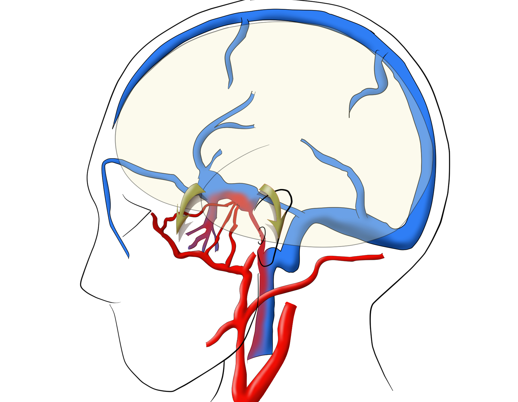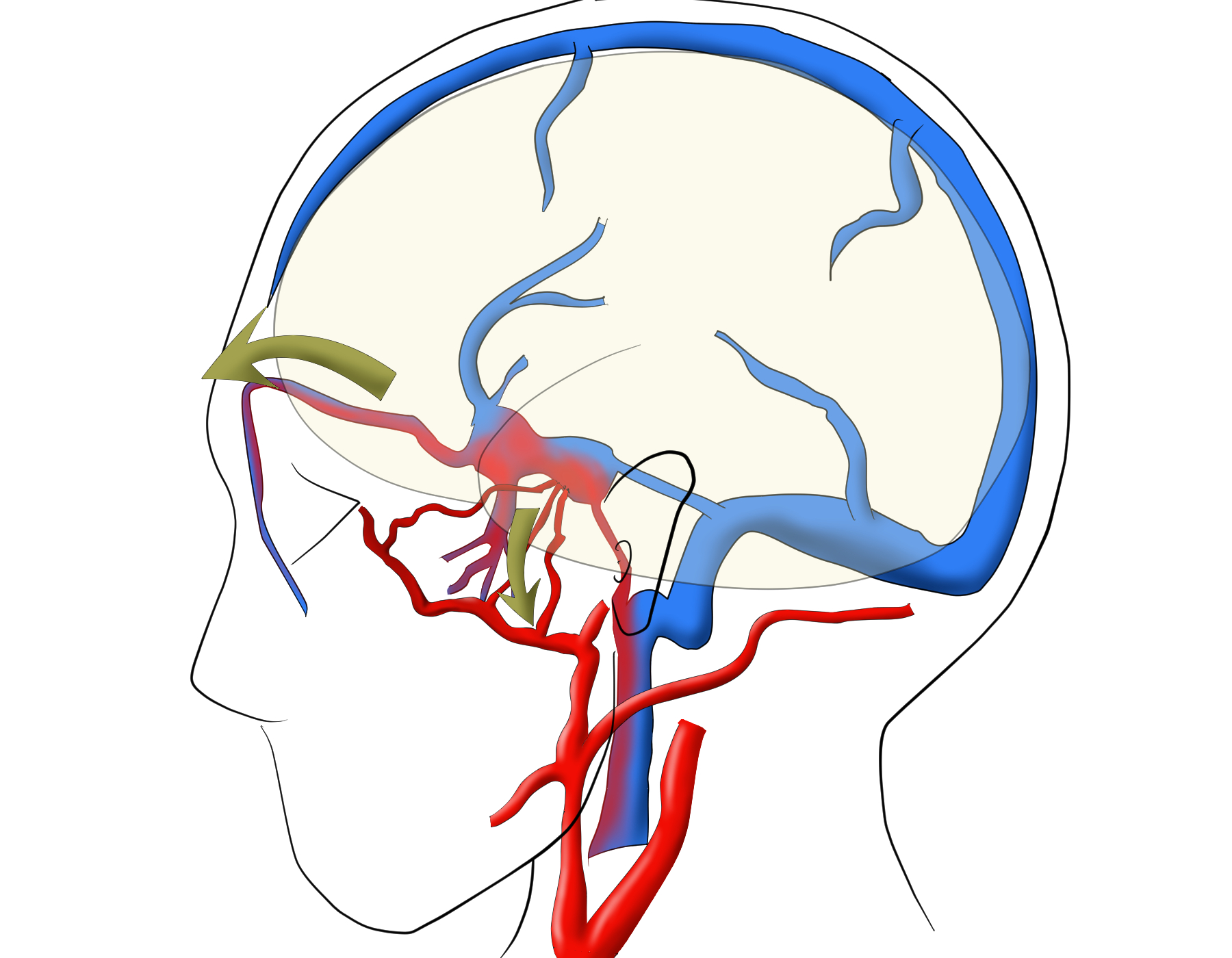 以下にイラストで海綿静脈洞部硬膜動静脈瘻の症状発生の仕組みを解説します。